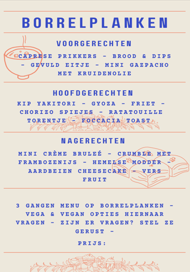 Welkom bij de menukaart van de gildeborrel! Onze menukaart is ontworpen met een moderne uitstraling, passend bij de sfeer van ons café in Venlo. We hebben een selectie van heerlijke gerechten en drankjes voor u samengesteld. Ontdek onze must-try borrel gerechten en meer!